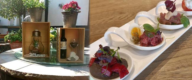 Die überwiegend deutsche Küche wird immer wieder saisonal und international beeinflusst. Stets frisch zubereitete Speisen oder ein leckeres Pils können hier in ganz entspannter Atmosphäre genossen werden.